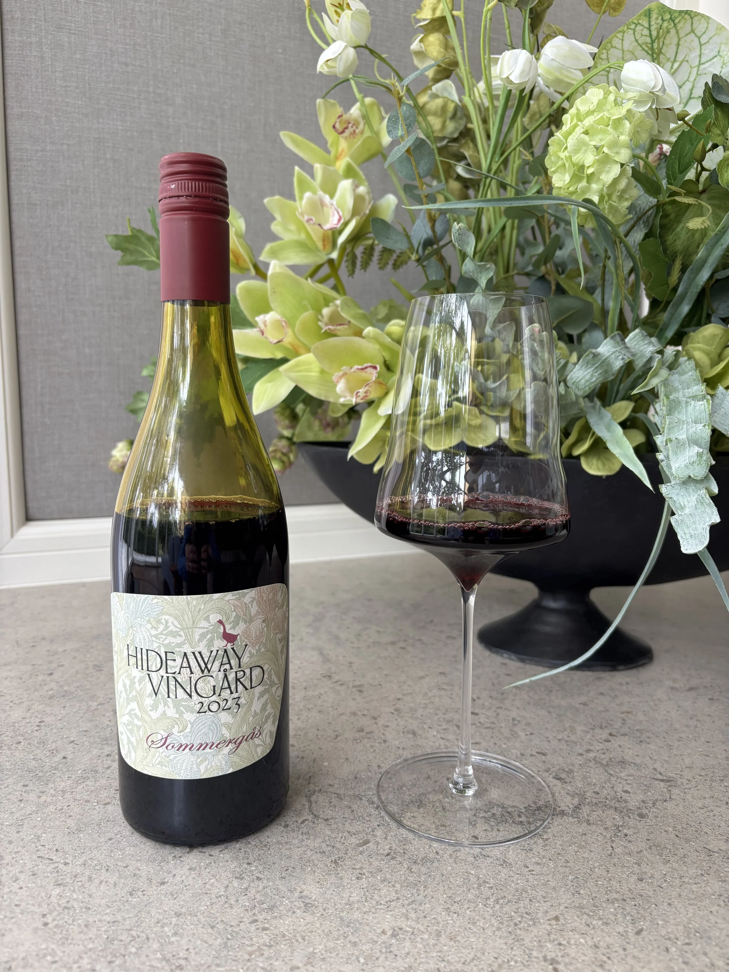 When bottled, Sommergås is left unfiltered, which keeps texture and depth. It is a red, fruit-forward wine, with cherries, strawberries, raspberries, and notes of red roses. There is even a fleeting, almost liquorice-like note on the first sniff, but it disappears quickly. The aromas are fresh and elegant, the kind that make you want to drink. On the palate the wine is well balanced, with bright fruit and a lively acidity that carries it through.
