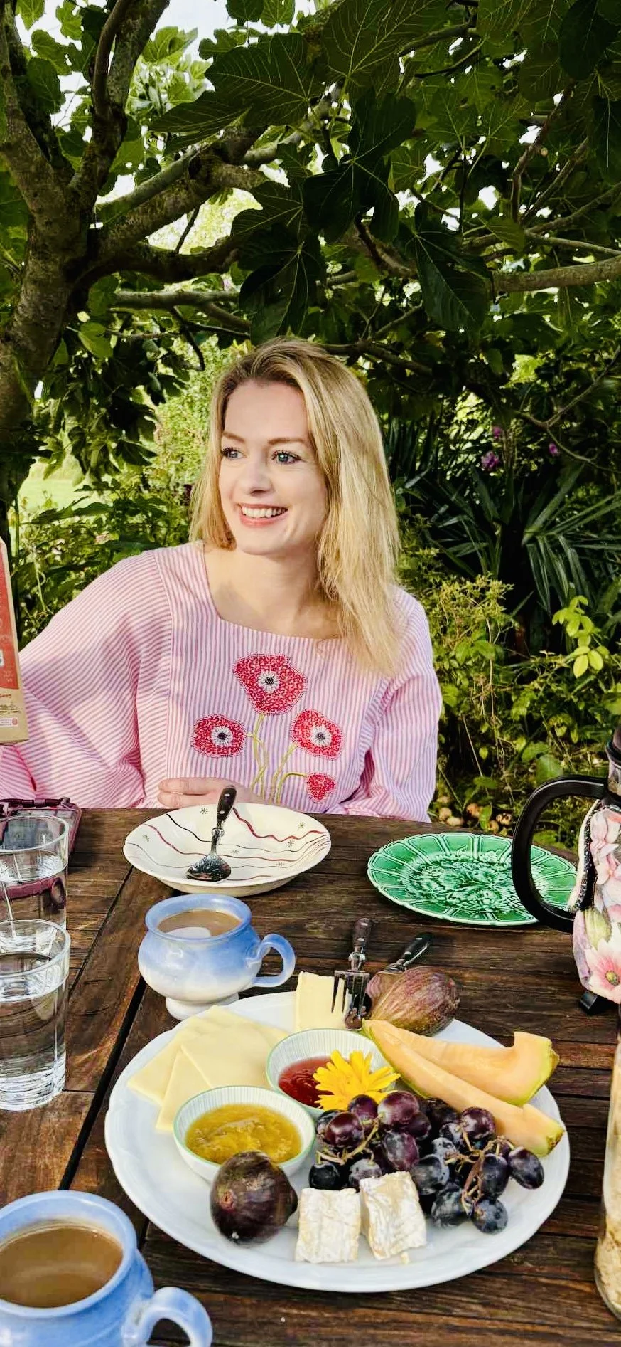 Karin and Charlotte Lou Langdon, known simply as Lou, welcome us with warmth. Karin leads us past the restaurant, Traktørstedet, where a large fig tree spreads its branches. We sit beneath it, its canopy forming a natural umbrella. It is not part of the fig garden itself, but this tree by the restaurant becomes our place to talk. It is here that the story of Hideaway begins.