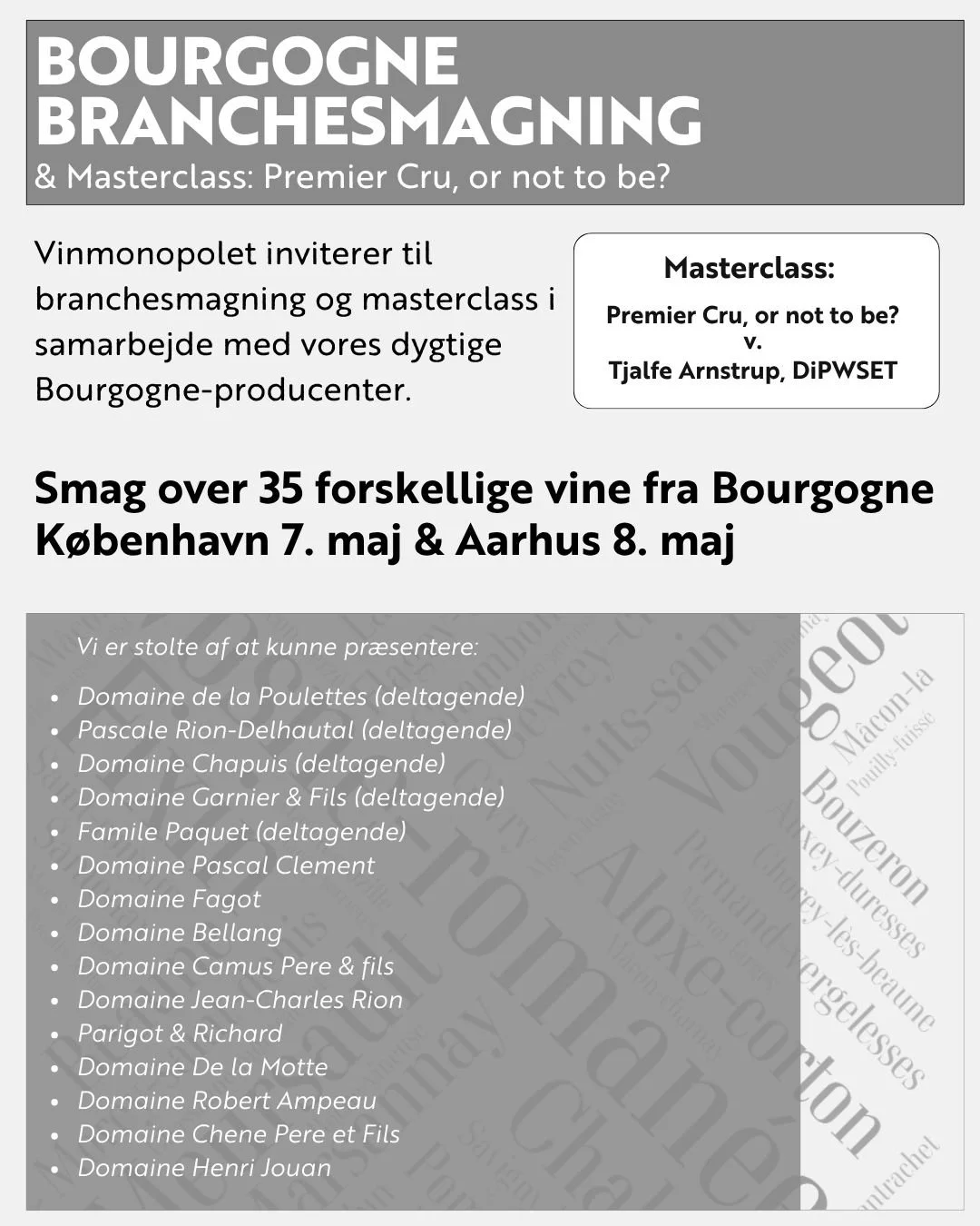 - Masterclass ”Premier Cru, or not to be?” v. Tjalfe Arnstrup, DiPWSET